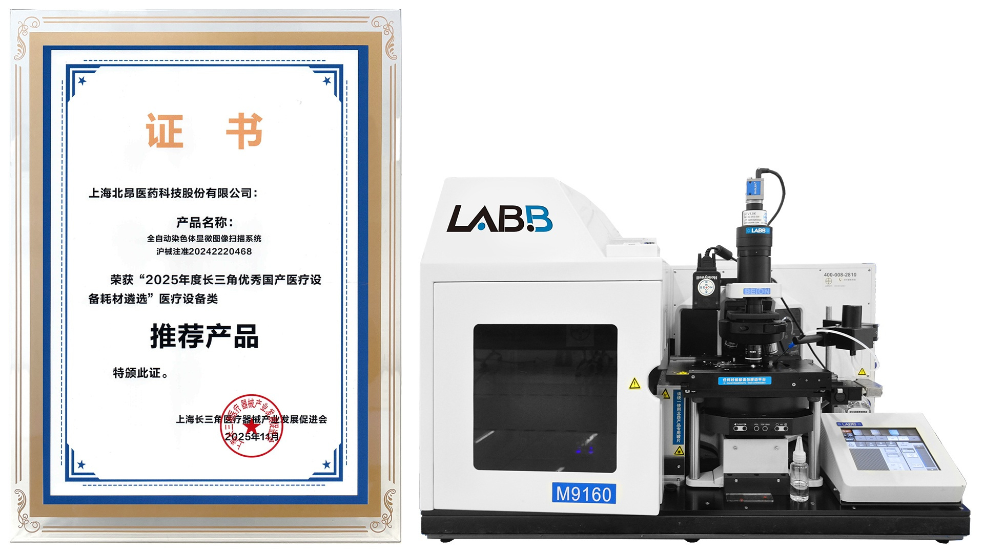 本次大会上,隆重揭晓了“长三角新优国产医疗器械推荐产品”评审结果,北昂医疗自研的全自动染色体显微图像扫描系统,荣获“2025年度长三角优秀国产医疗设备耗材遴选”医疗设备类推荐产品!